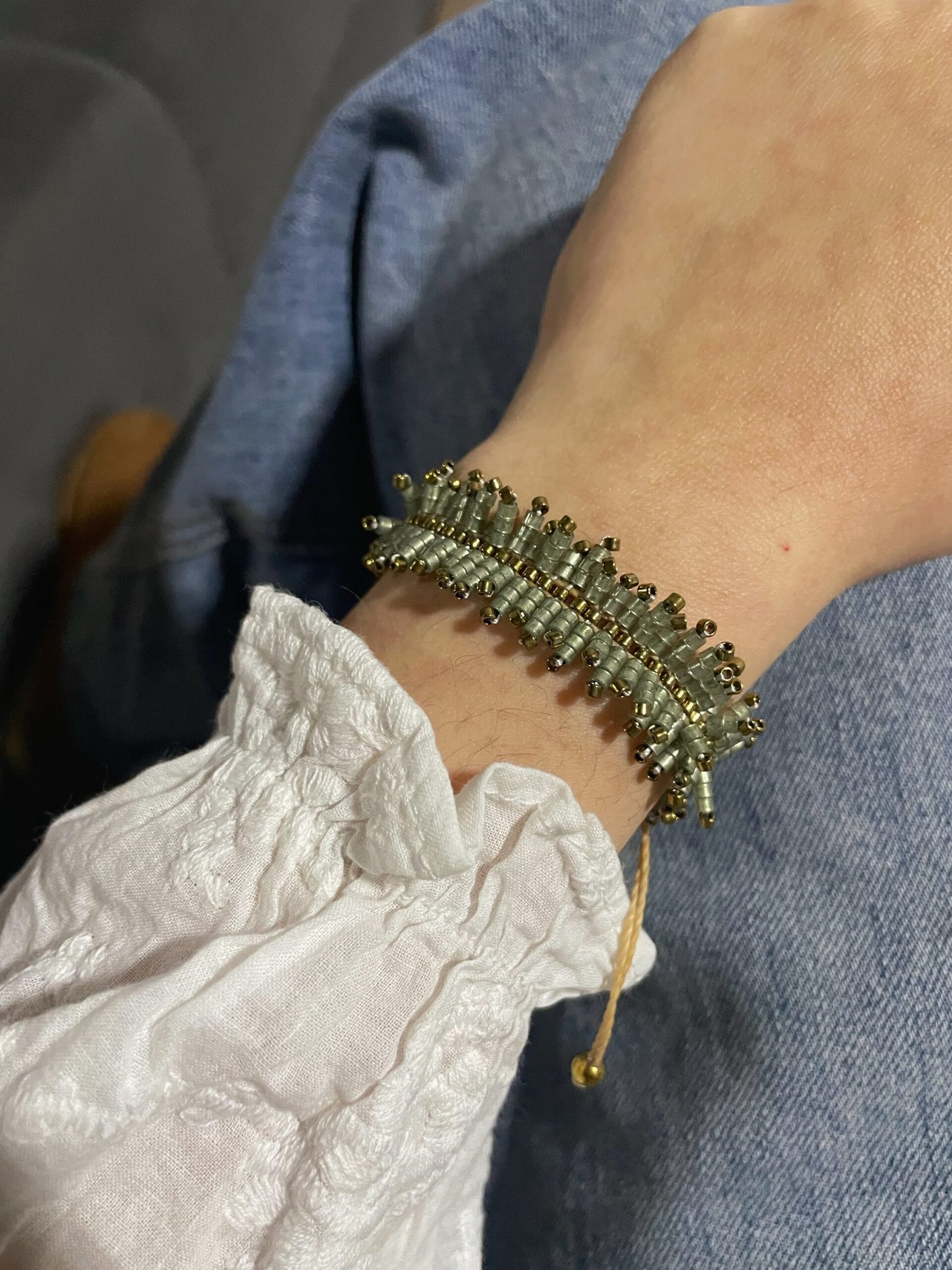 Pulsera té verde CategorÃasVer todo Pulseras tejidas Collares Pulsera té verde$1.100 Agotado Pulsera hecha en telar con cuentas calibradas. Regulable. Sin existencias CategorÃas: Pulseras tejidas, Ver todo Productos relacionados AgotadoPulsera flechas $950 Leer más AgotadoPulsera ojo turco $950 Leer más Pulsera estrella oro $450 Añadir al carrito Collar noir $550 Añadir al carrito